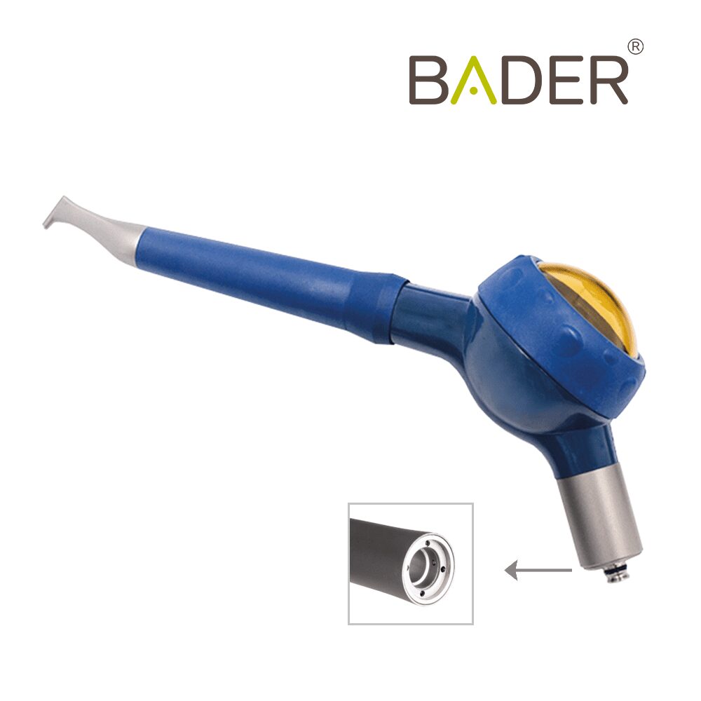 Aeropulidor que elimina la placa dental (causante de graves complicaciones periodontales), pule las manchas (incluso las más complicadas), y mejora la estética del dientes, ya que los polvos de spray de bicarbonato alcanzan las zonas más complejas con mayor facilidad y sin molestias en el paciente.