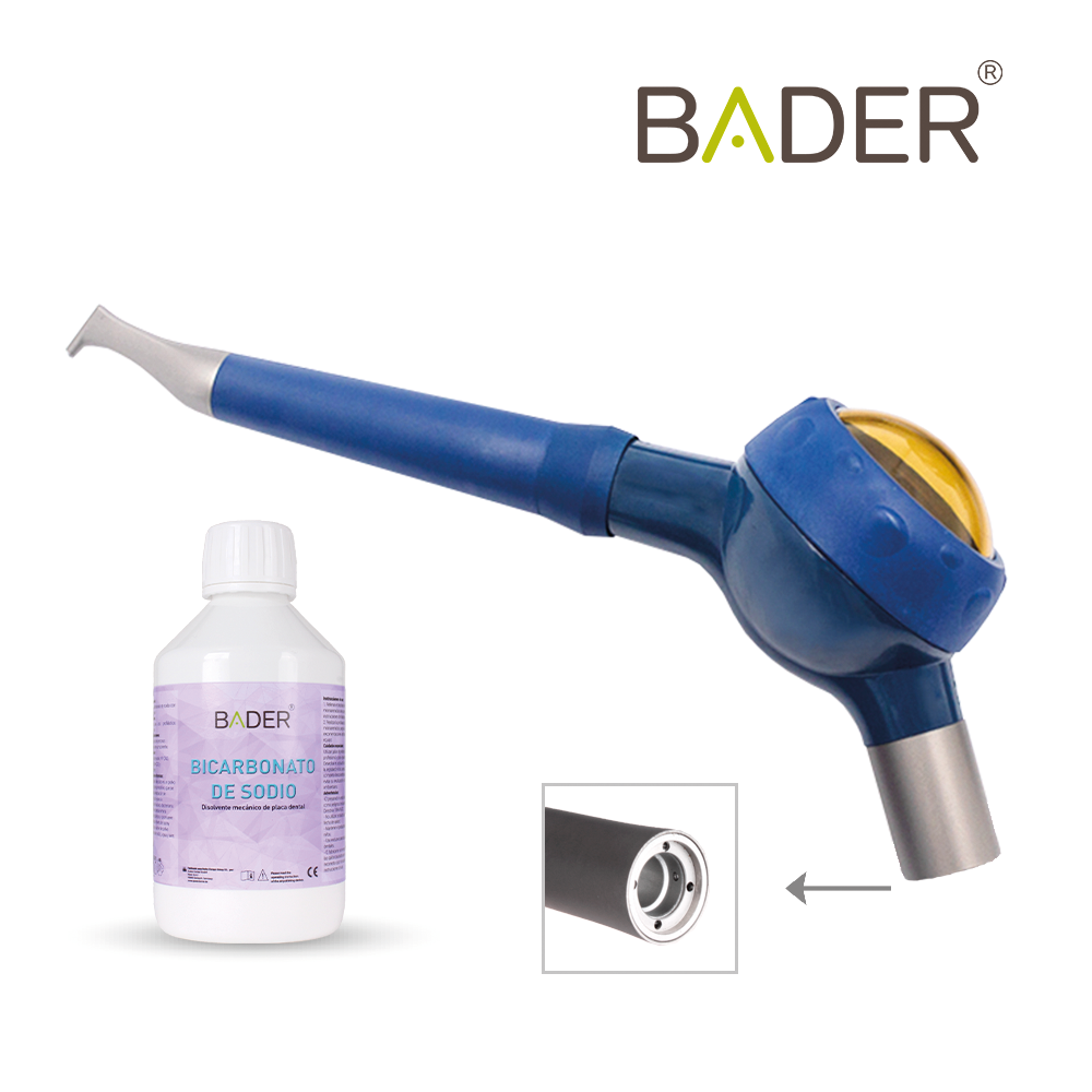 Desde BADER®️ DENTAL sabemos que para tu clínica buscas los mejores artículos, por eso te ofrecemos este aeropulidor que elimina la placa dental (causante de graves complicaciones periodontales), pule las manchas (incluso las más complicadas), y mejora la estética del dientes, ya que los polvos de spray de bicarbonato alcanzan las zonas más complejas con mayor facilidad y sin molestias en el paciente.