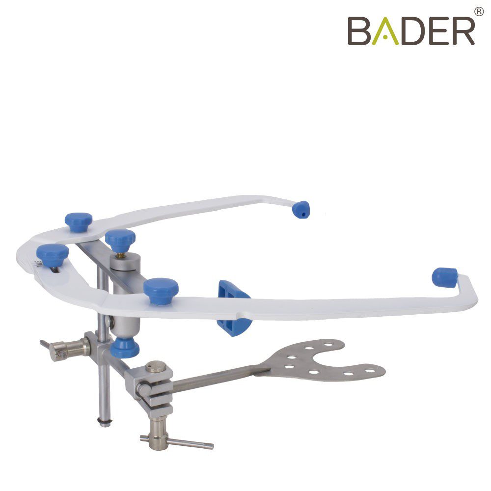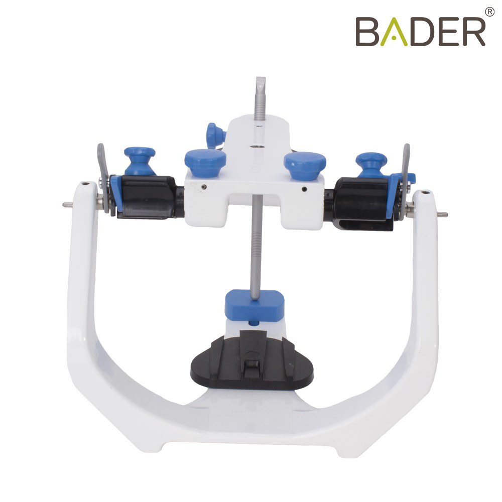 – El arco facial BADER® es un instrumento utilizado para registrar y transferir para el articulador la posición espacial de la mandibula del paciente en relación a la base del cráneo y al eje de rotación condilar. De tipo anatómico con juntas universales de apertura manual, elimina el uso de llaves. Sus aurículas de plástico son anatómicas.