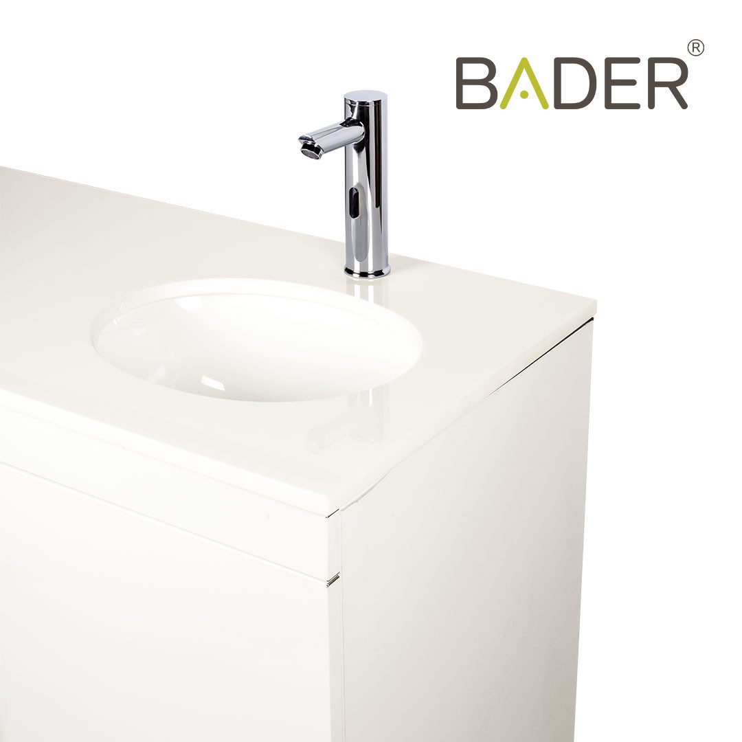 Contiene lavabo encastrado con grifo automático en cromado a la derecha.