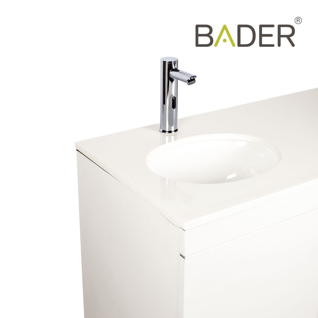 Lavabo encastrado con grifo automático en cromado al lado izquierdo