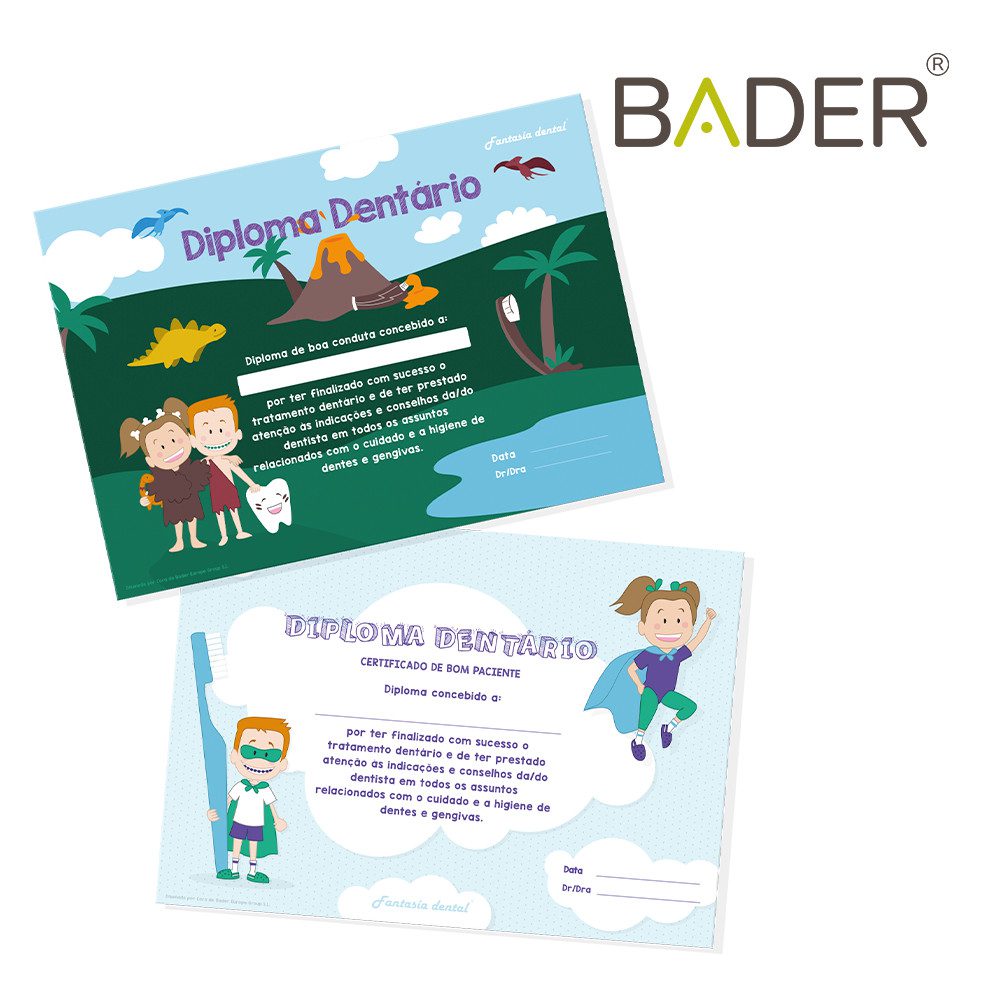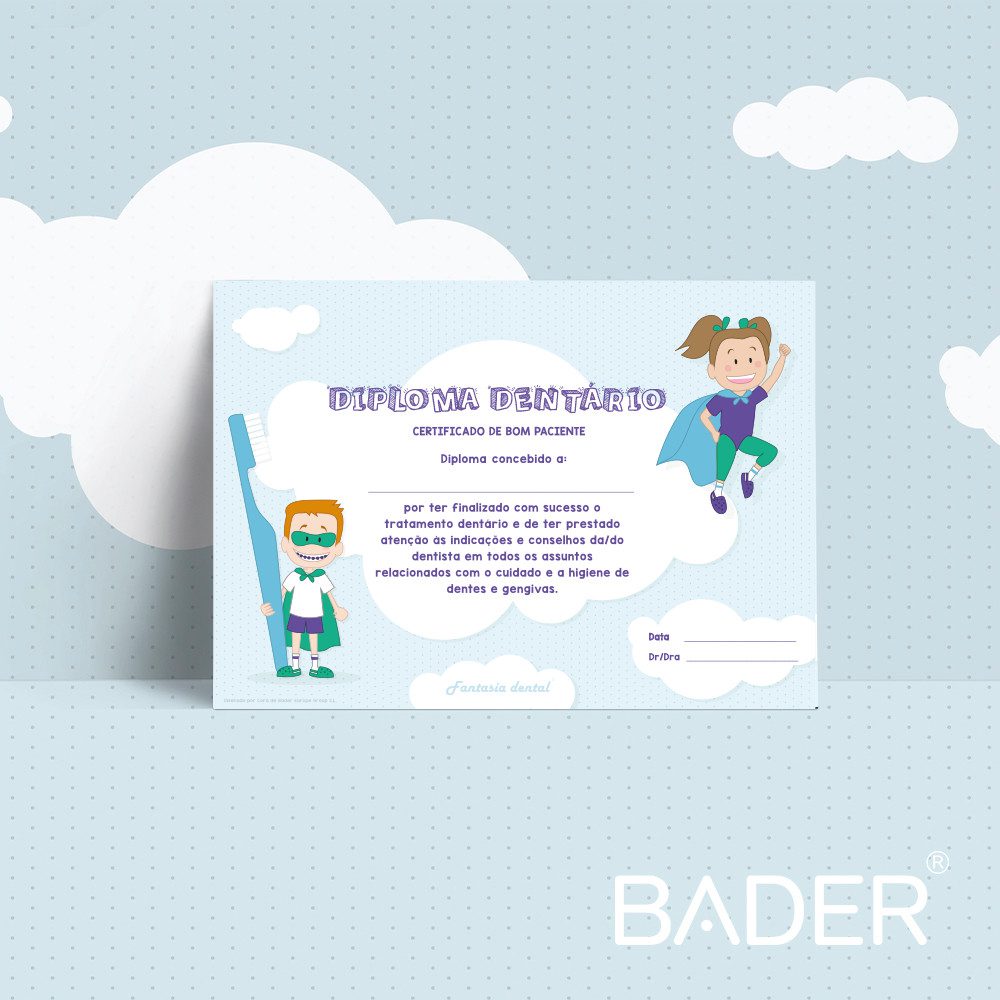 Diploma concedido a ……………………………………… por ter concluído com sucesso o tratamento odontológico e prestar atenção ás indicações e conselhos do Medico Dentista no cuidado e higiene dos dentes e gengivas.