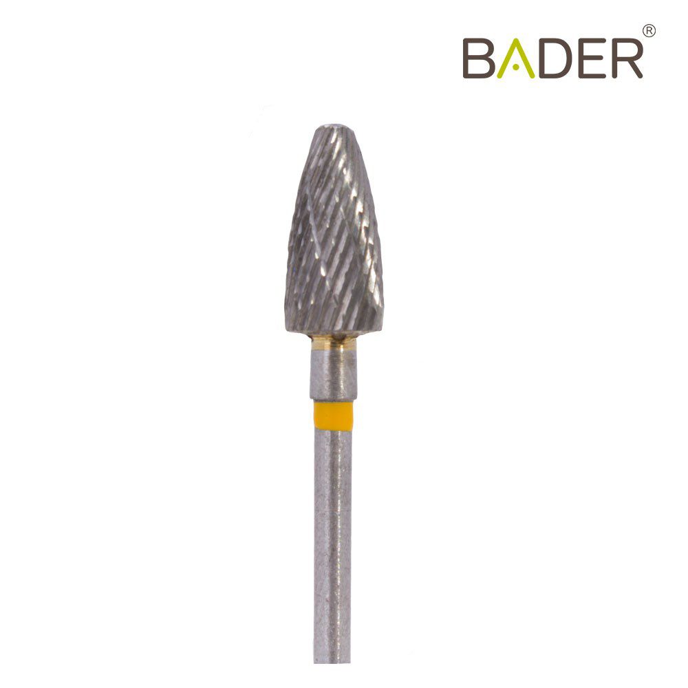 La fresa Carburo tiene dientes cortantes cruzados para mayor eficiencia y una punta en forma de llama para precisión en áreas pequeñas.