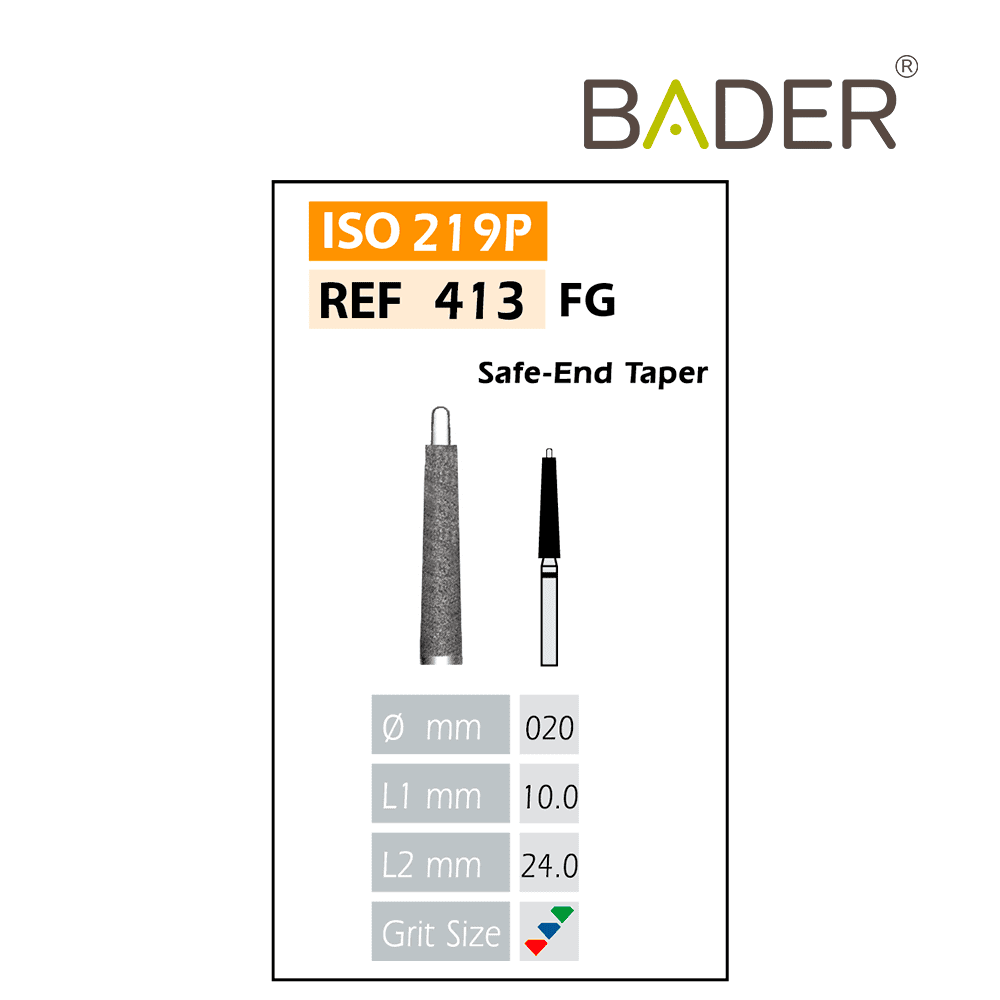 La rugosidad o el tamaño del grano de la cabeza. Es importante que al realizar su pedido nos indique el tipo de grano que desea.El tipo de rugosidad puede identificarse por el color de la fresa dental. La clasificación de rugosidades de las fresas dentales es también standard y estas son las que Bader tiene disponibles: