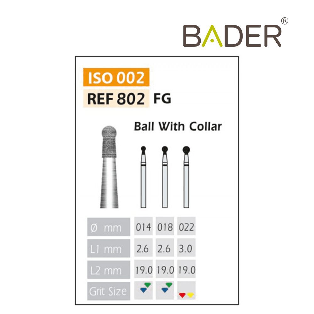 La rugosidad o el tamaño del grano de la cabeza. Es importante que al realizar su pedido nos indique el tipo de grano que desea.El tipo de rugosidad puede identificarse por el color de la fresa dental. La clasificación de rugosidades de las fresas dentales es también standard y estas son las que Bader tiene disponibles:
