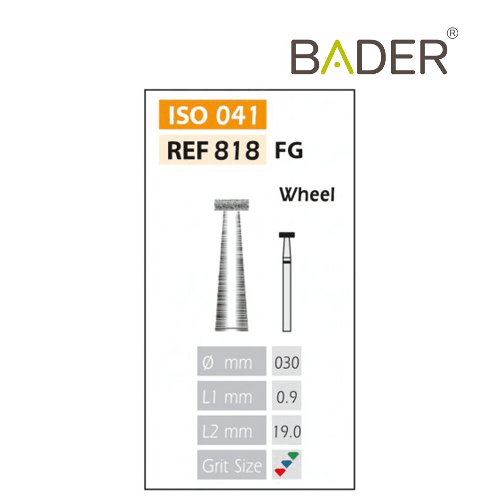 La rugosidad o el tamaño del grano de la cabeza. Es importante que al realizar su pedido nos indique el tipo de grano que desea.El tipo de rugosidad puede identificarse por el color de la fresa dental. La clasificación de rugosidades de las fresas dentales es también standard y estas son las que Bader tiene disponibles: