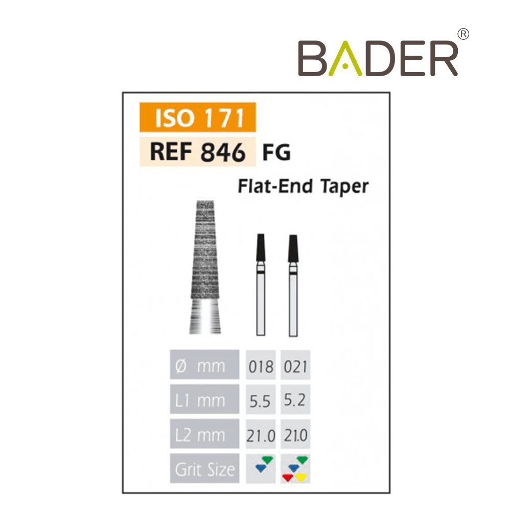 La rugosidad o el tamaño del grano de la cabeza. Es importante que al realizar su pedido nos indique el tipo de grano que desea.El tipo de rugosidad puede identificarse por el color de la fresa dental. La clasificación de rugosidades de las fresas dentales es también standard y estas son las que Bader tiene disponibles: