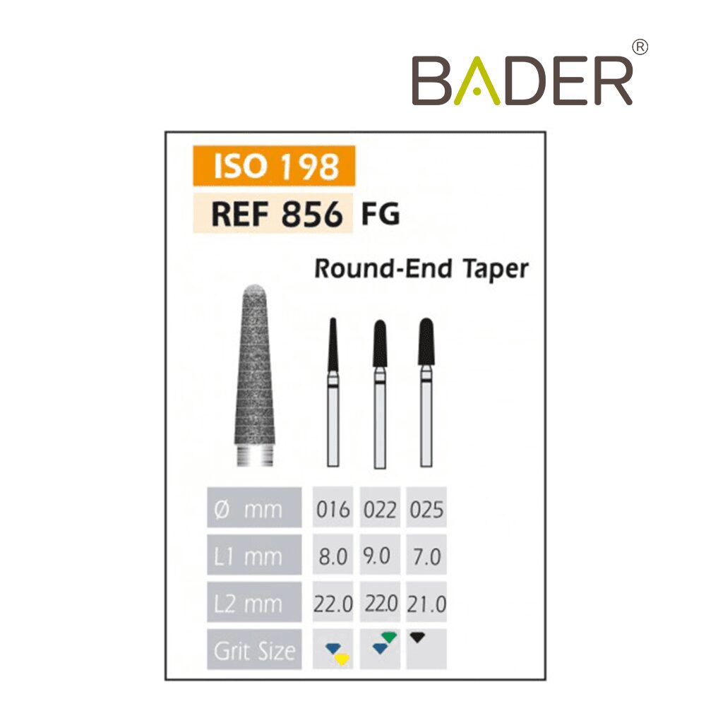 La rugosidad o el tamaño del grano de la cabeza. Es importante que al realizar su pedido nos indique el tipo de grano que desea.El tipo de rugosidad puede identificarse por el color de la fresa dental. La clasificación de rugosidades de las fresas dentales es también standard y estas son las que Bader tiene disponibles: