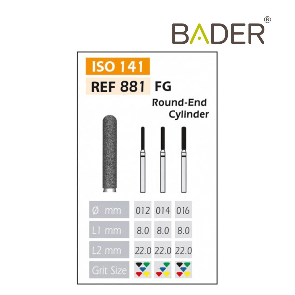 La rugosidad o el tamaño del grano de la cabeza. Es importante que al realizar su pedido nos indique el tipo de grano que desea.El tipo de rugosidad puede identificarse por el color de la fresa dental. La clasificación de rugosidades de las fresas dentales es también standard y estas son las que Bader tiene disponibles: