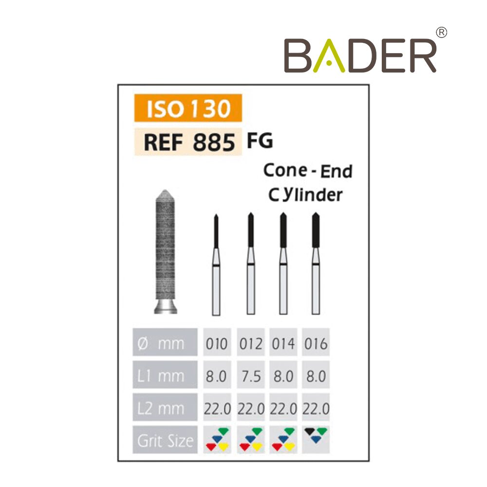 La rugosidad o el tamaño del grano de la cabeza. Es importante que al realizar su pedido nos indique el tipo de grano que desea.El tipo de rugosidad puede identificarse por el color de la fresa dental. La clasificación de rugosidades de las fresas dentales es también standard y estas son las que Bader tiene disponibles: